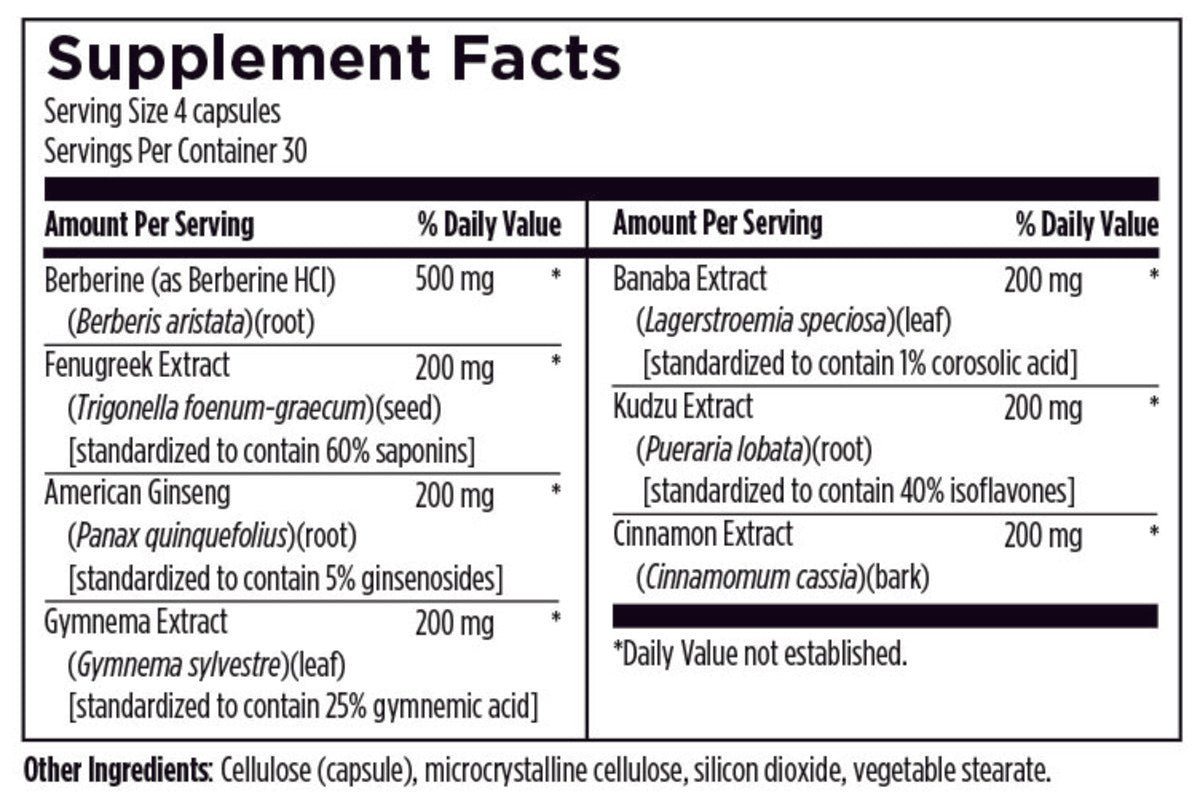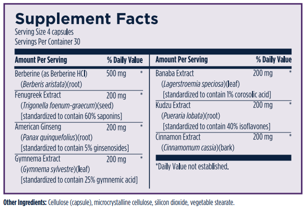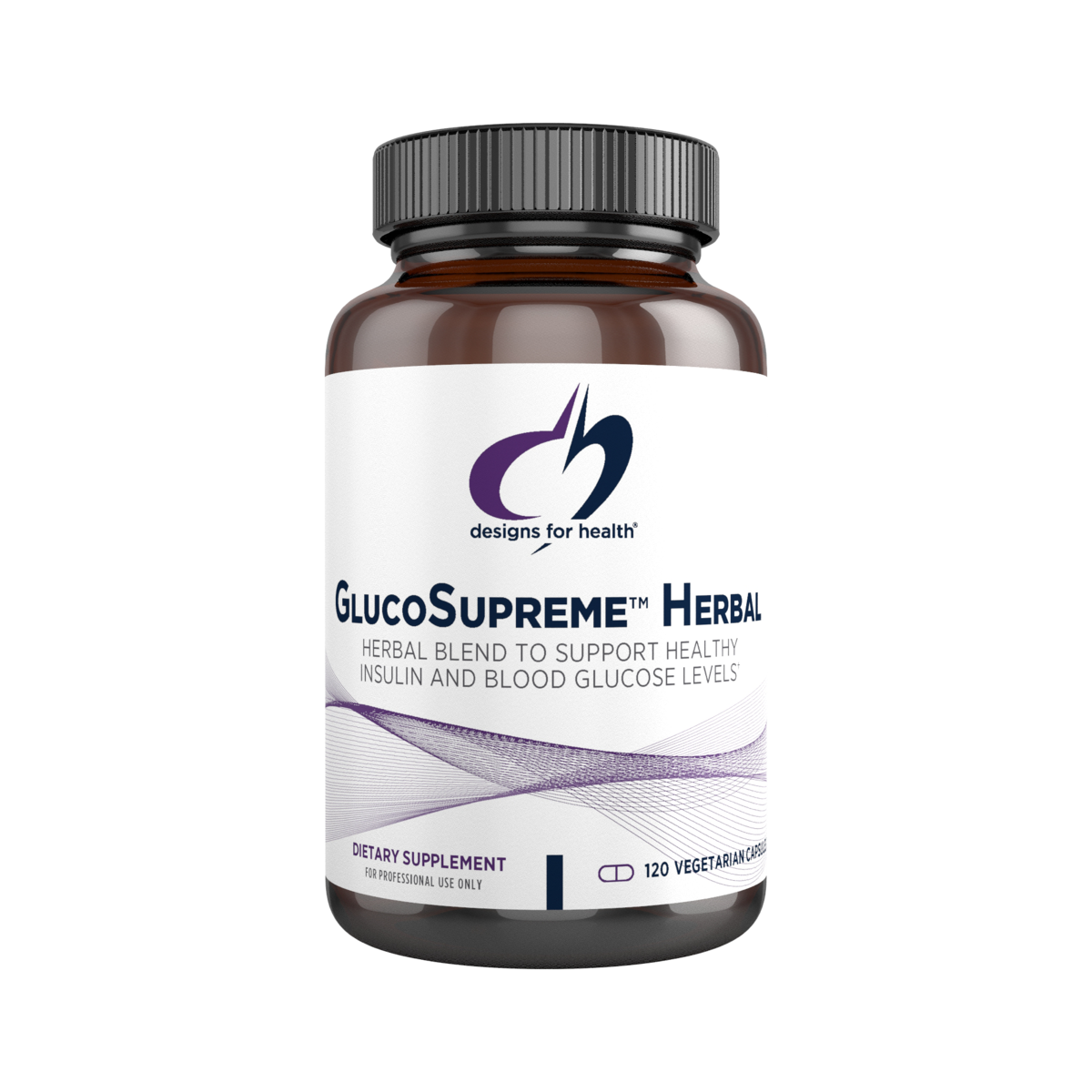 GlucoSupreme™ Herbal is ideal for supporting healthy insulin and glucose levels. This unique, synergistic formula combines standardized herbs and other botanicals that are shown to support healthy blood sugar through various mechanisms, including cinnamon, corosolic acid from banaba, isoflavones from kudzu, and ginsenosides from ginseng. It also contains berberine (Berberis aristata), a compound highly regarded for its efficacy in supporting healthy blood glucose regulation and insulin sensitivity.
