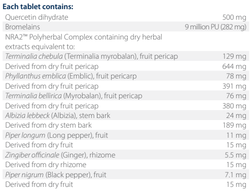 - A unique combination of Aller-7® plus Bromelains and Quercetin.