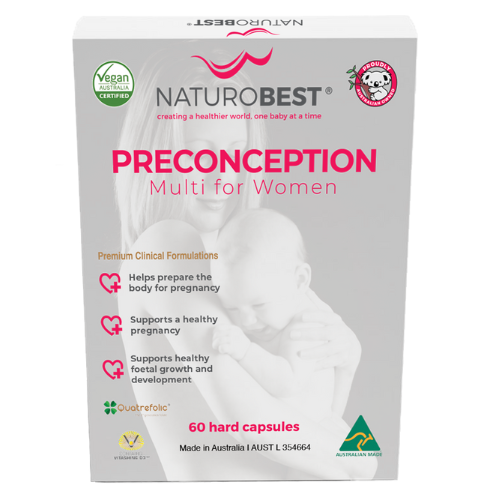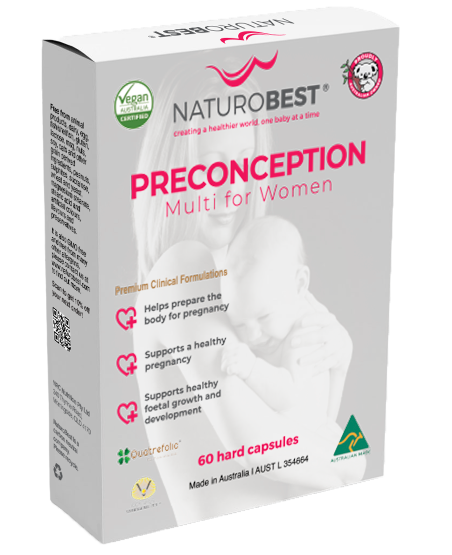 NaturoBest's product is Australia’s first preconception multi with Quatrefolic®, the 4th generation active folate and also folinic acid, ideal for those who have genetic difficulties with metabolising folic acid. Preconception Multi for Women also contains 24mg of elemental iron bisglycinate as the patented Ferrochel® in a daily dose.