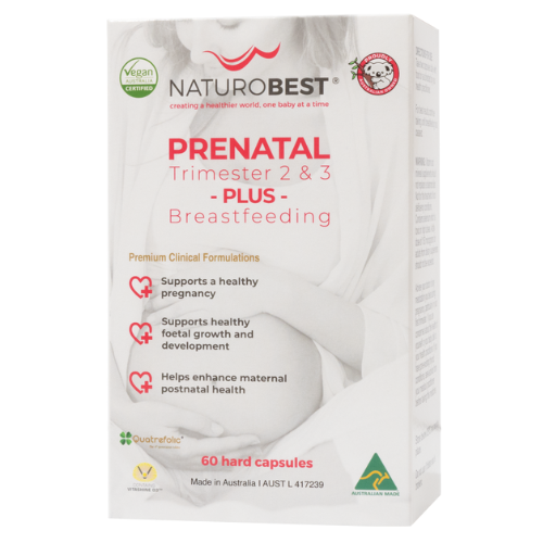 NaturoBest’s Prenatal Trimester 2 & 3 Plus Breastfeeding vitamins are Australia’s first prenatal and breastfeeding vitamin with Quatrefolic®, the fourth-generation active folate and folinic acid, ideal for people who have genetic difficulties with folic acid metabolism.
