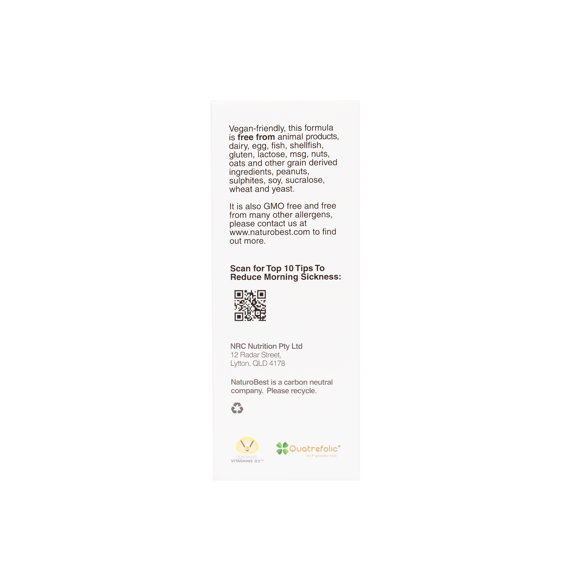 Clinically formulated by an experienced fertility naturopath, NaturoBest's Prenatal Trimester One were the first in Australia to contain 500mcg of folate as Quatrefolic®, the 4th generation active folate in a daily dose.
