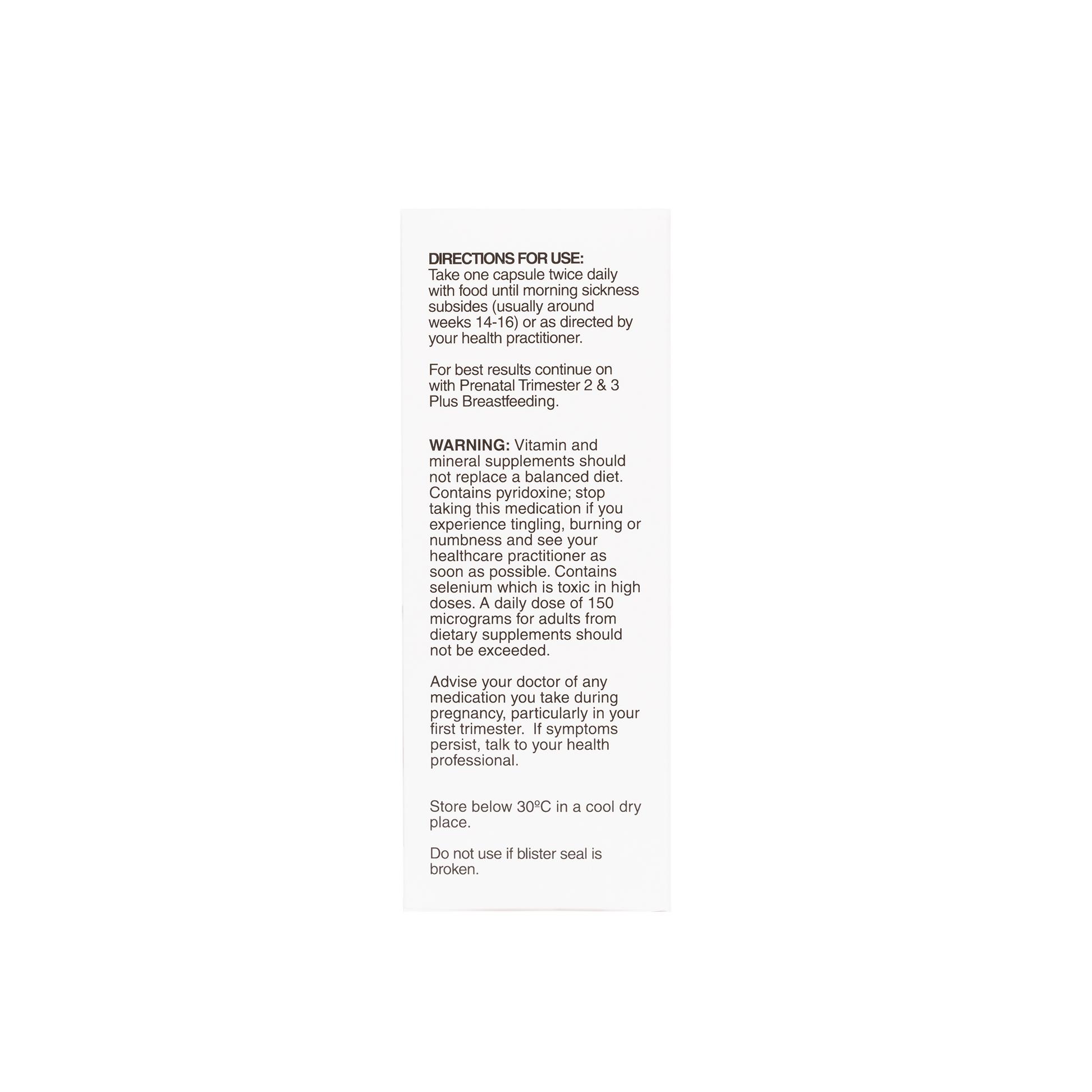 Prenatal Trimester One with Ginger is a 2-in-1 formulation, a prenatal vitamin and mineral supplement designed specifically for the first trimester as well as a morning sickness relief formula with the addition of 75mg of vitamin B6 and 1300mg of ginger.